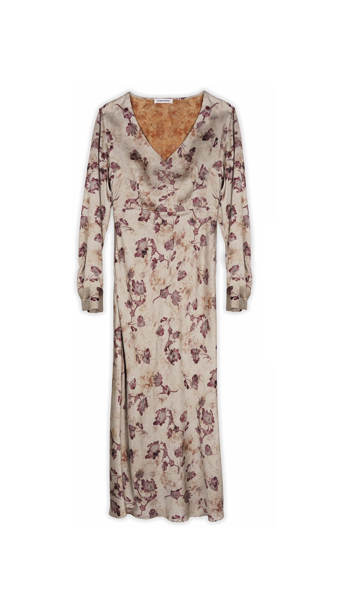 Abito lungo in rasato doppio di viscosa, Scollatura a v e impuntura in vita con...