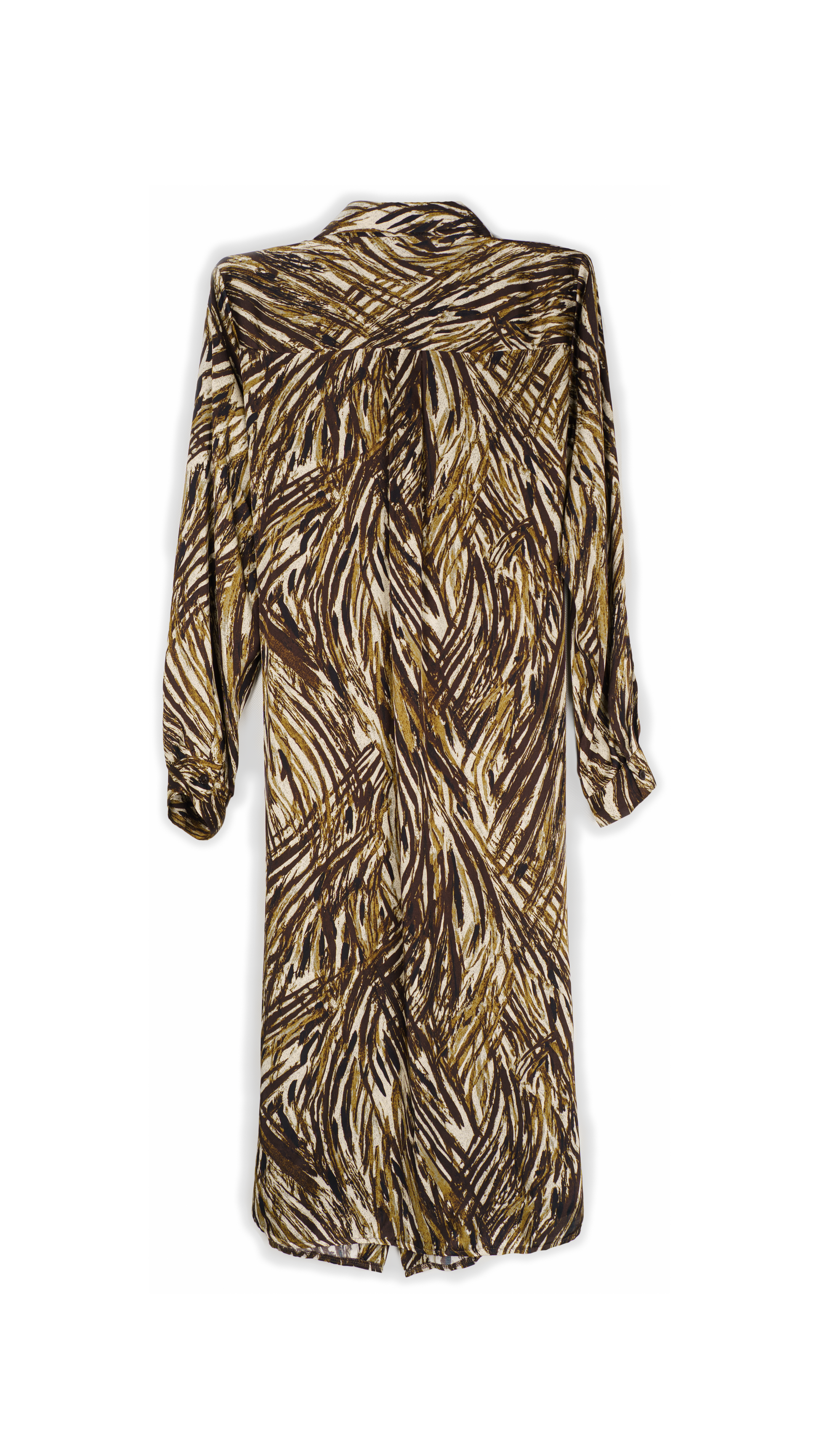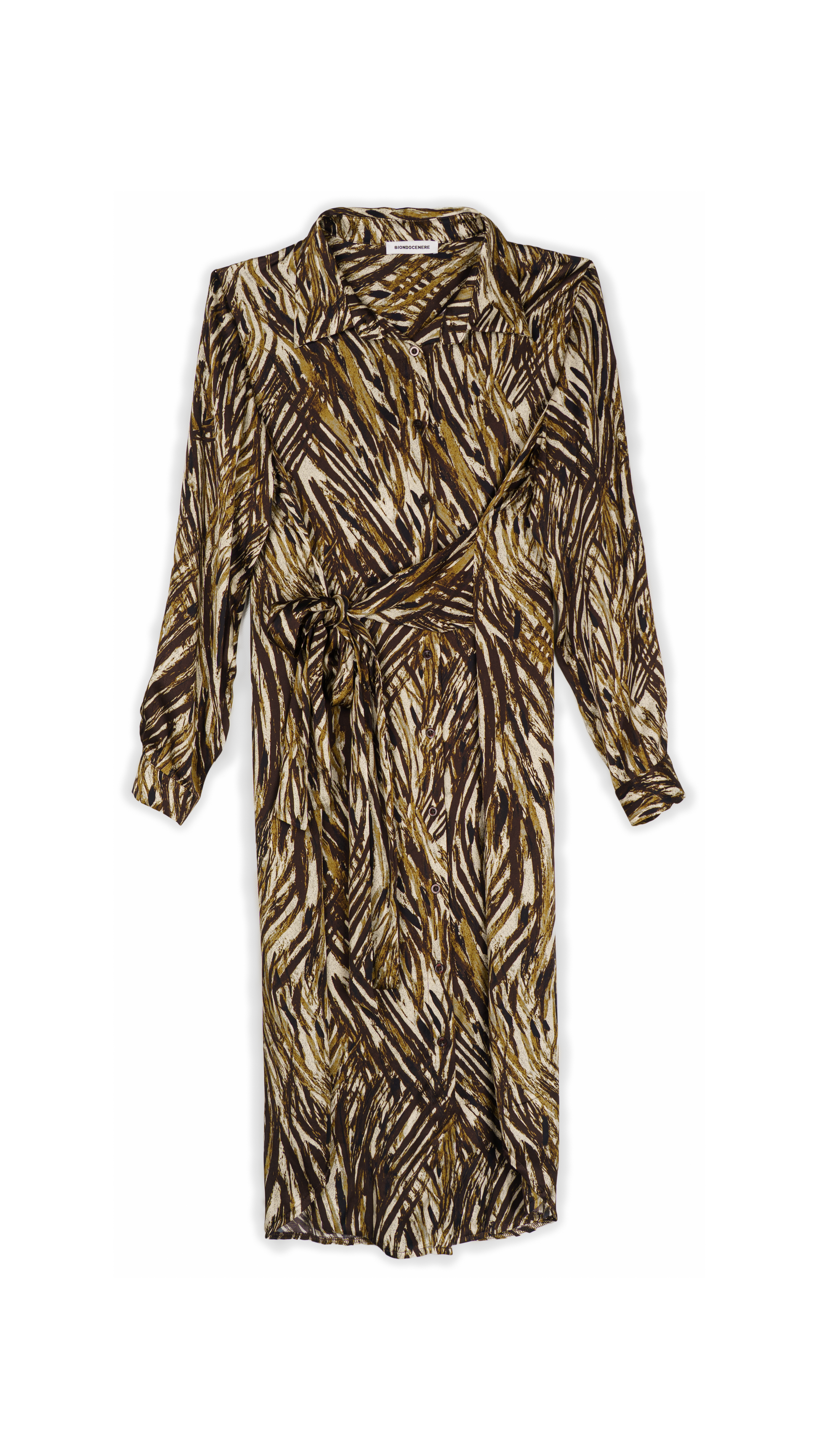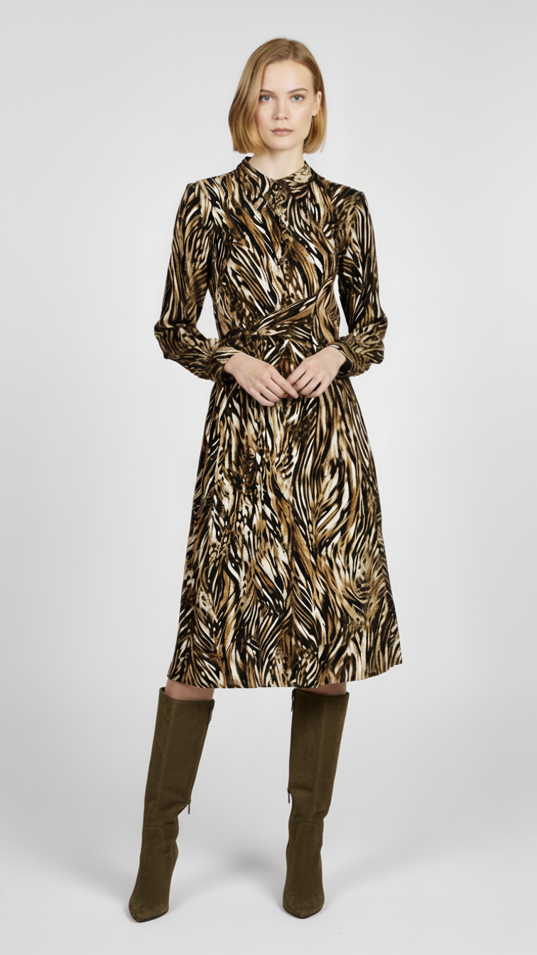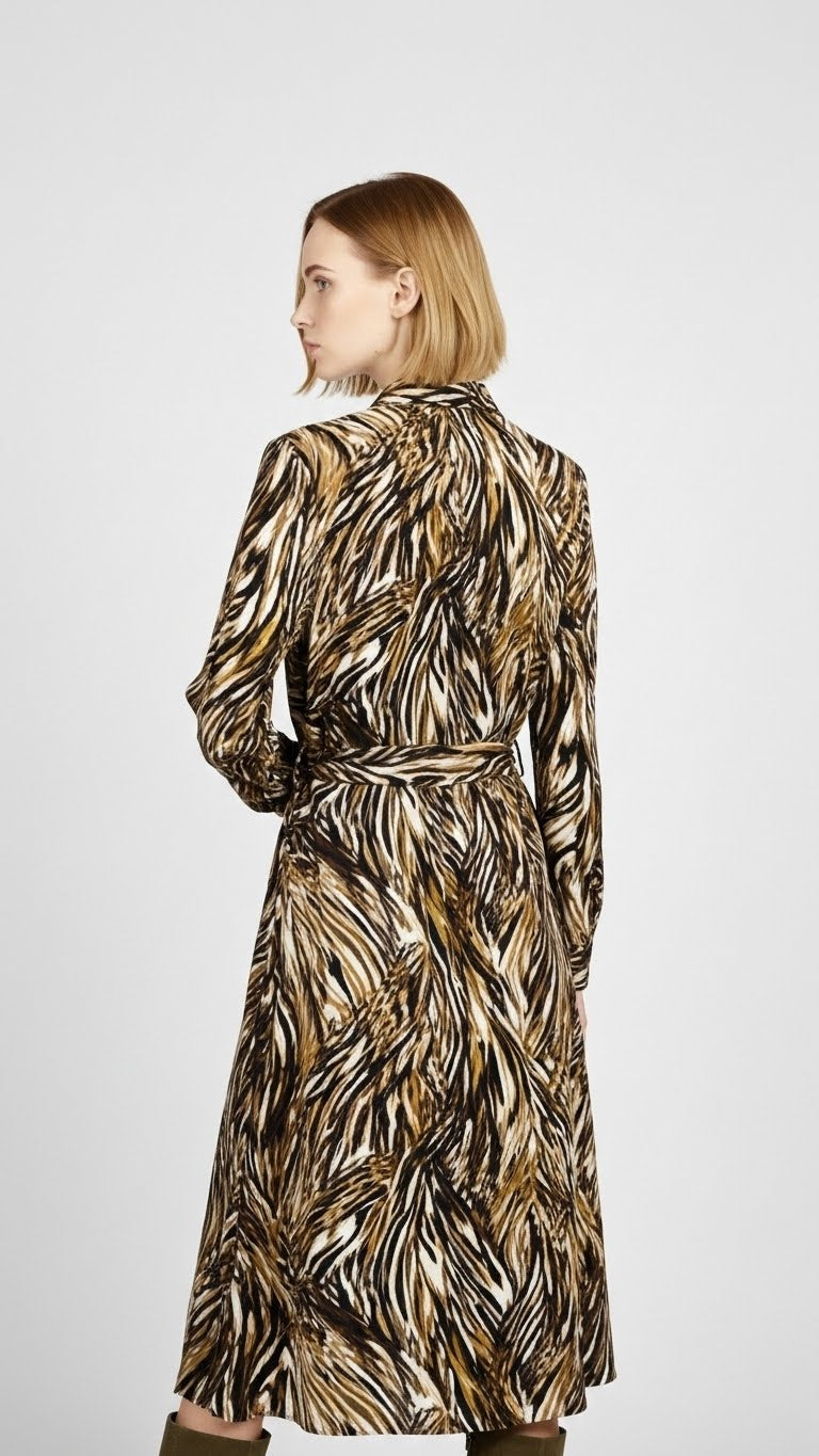 Chemisier lunga in rasato doppio di viscosa con fascia animalier astratta