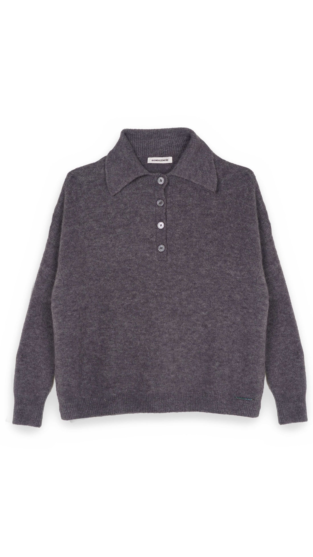 Polo in lana alpaca con bottoncini in tinta. Dettagli a costine lungo tutto il colletto,...