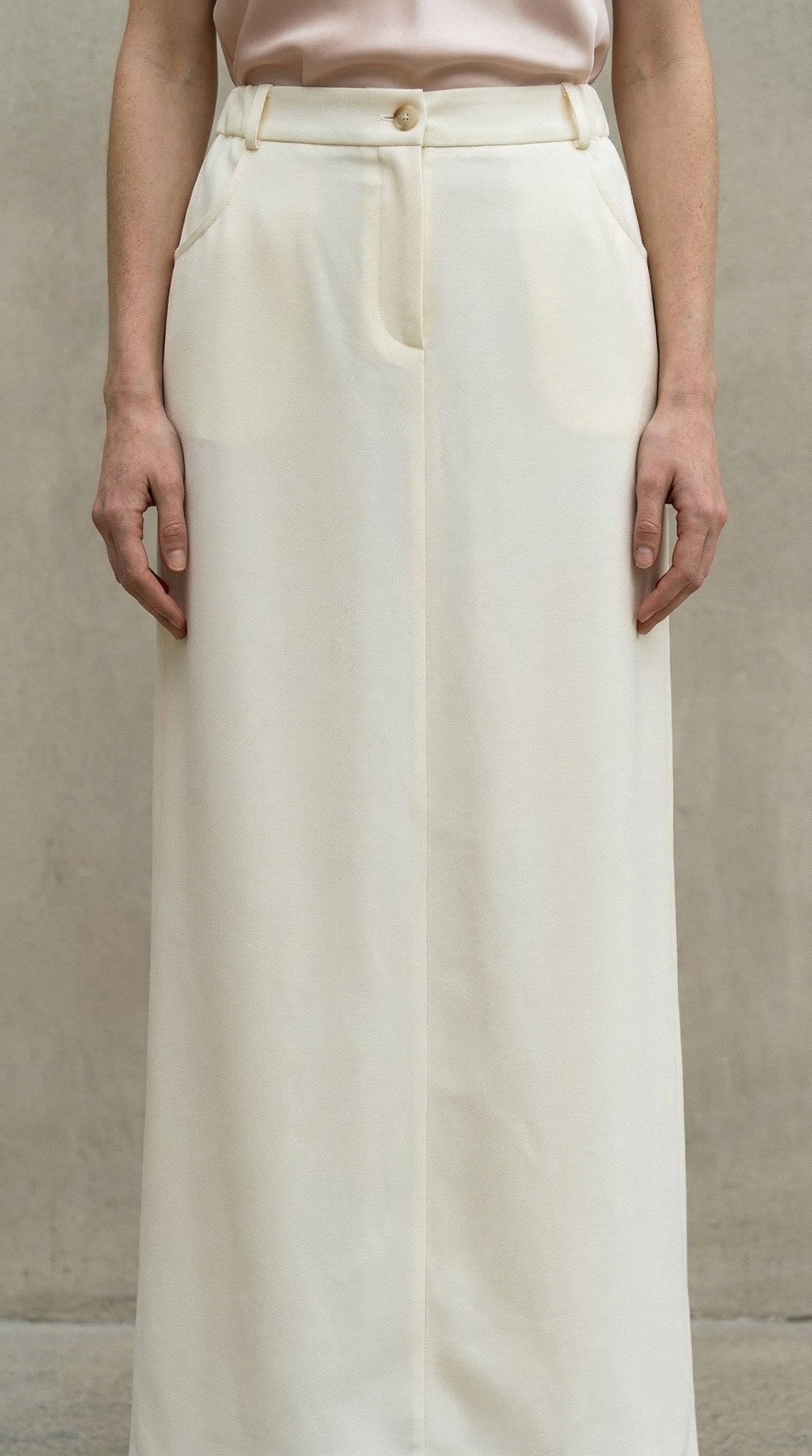Gonna lunga in lyocell chiusura centrale da pantalone con vita elasticizzata solo sul retro