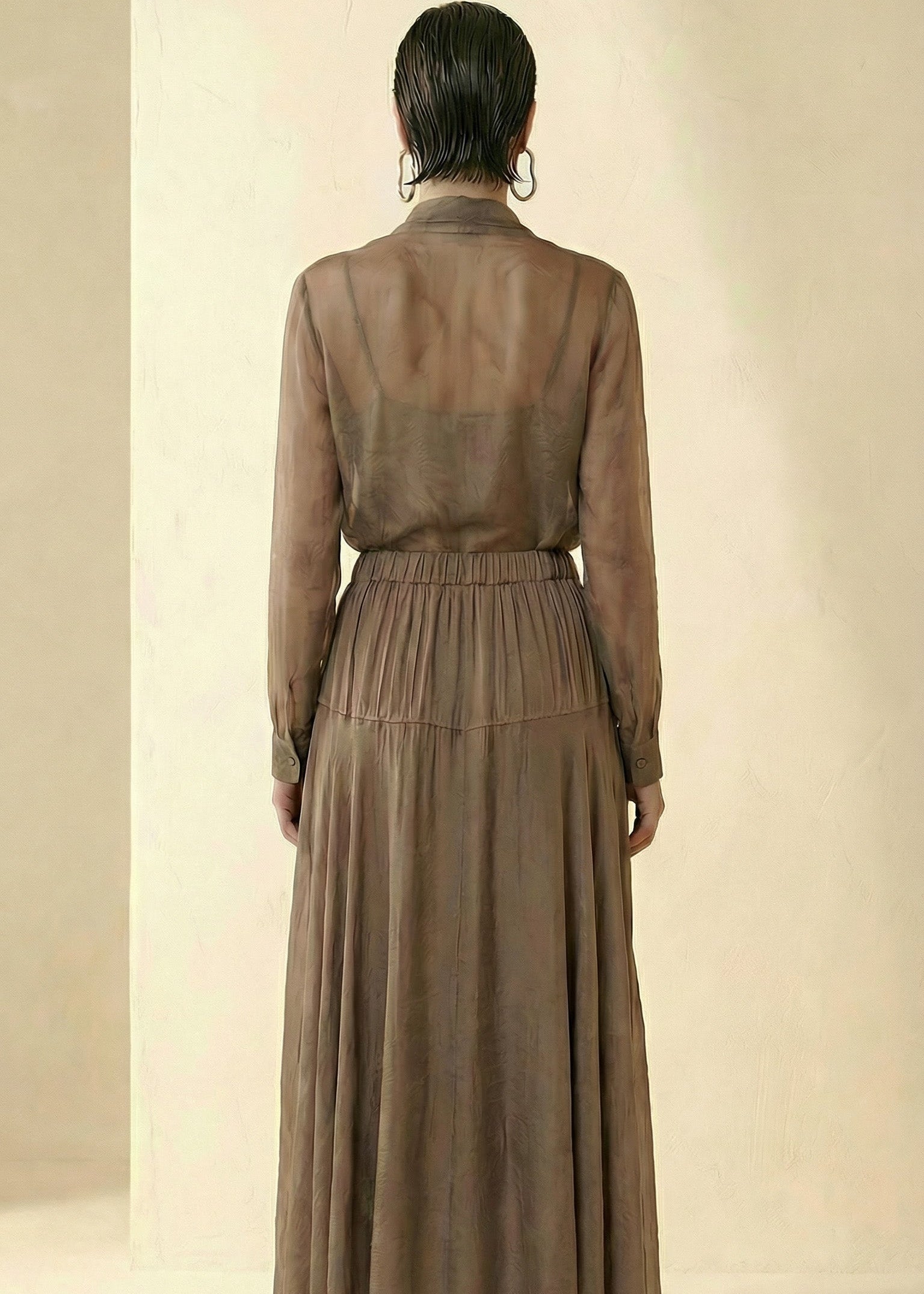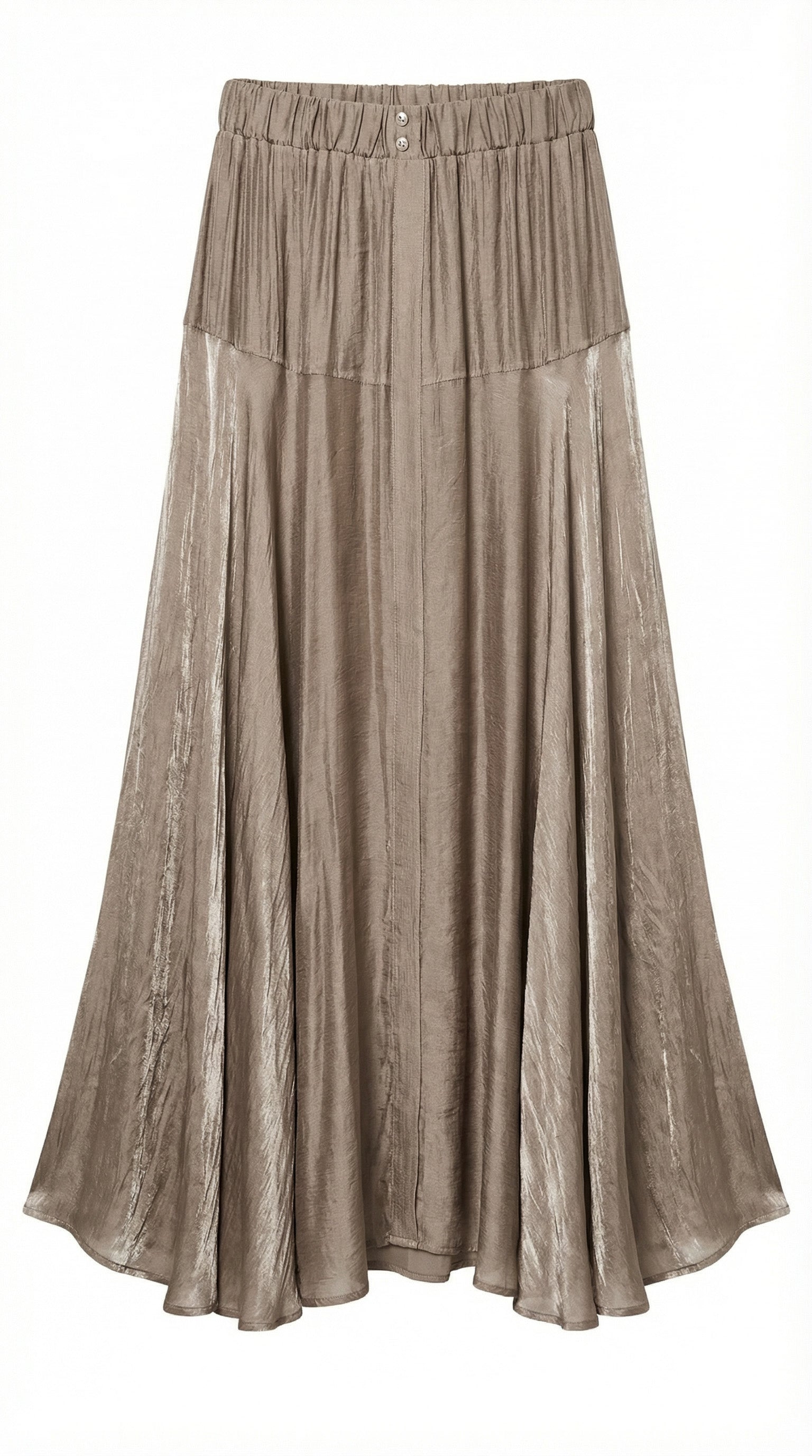 Gonna lunga in lyocell con sottoveste in tinta vita elasticizzata con bottoncini centrali e impunture orizzontali sulle anche