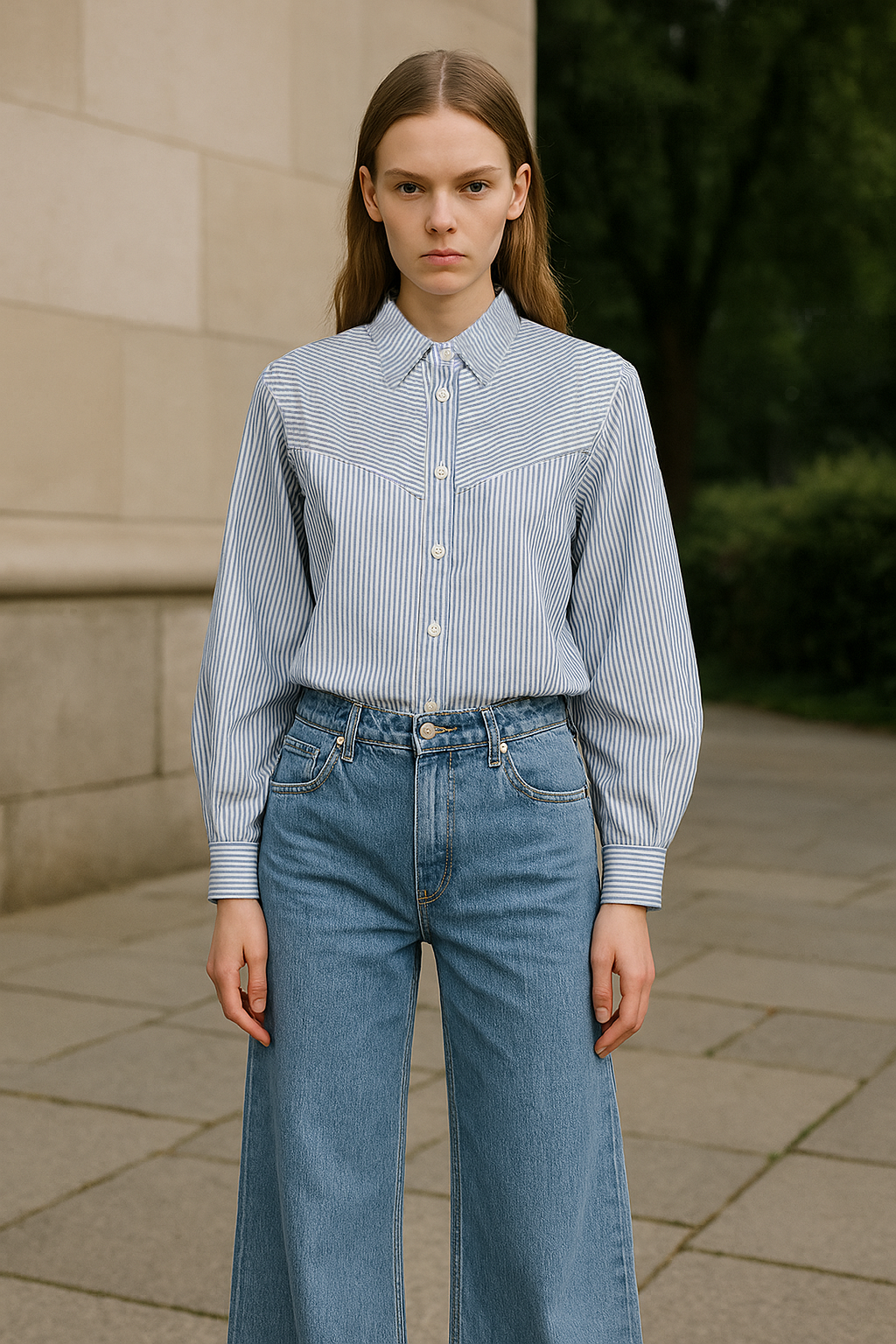 Camicia a righe verticali nella parte del busto e delle maniche.