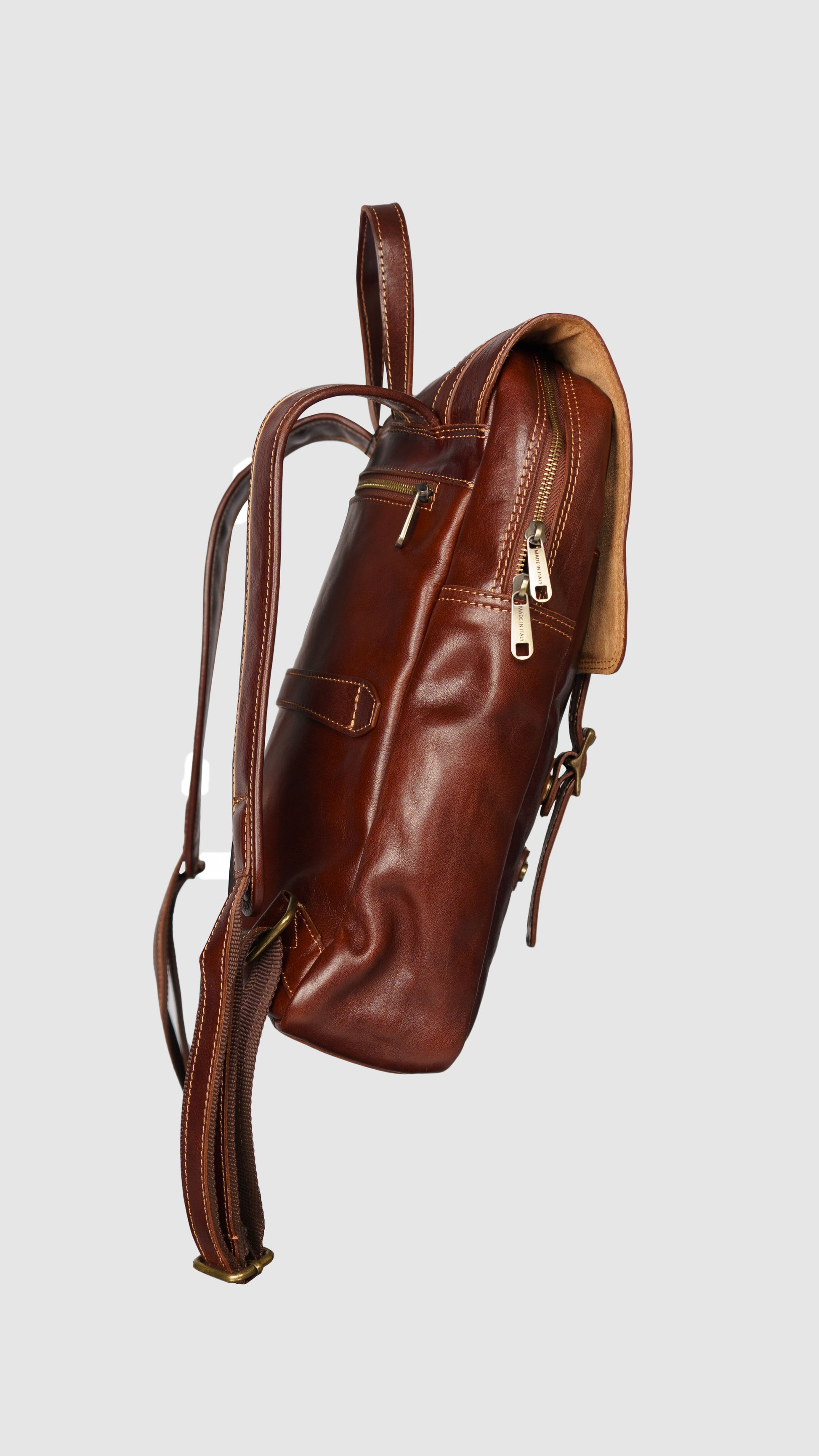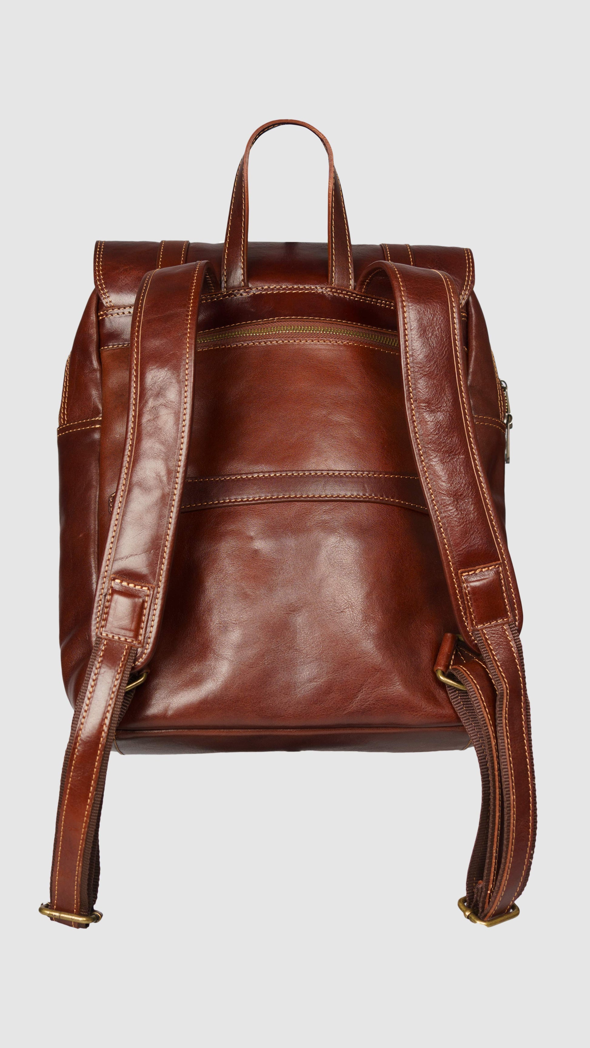 Nella parte posteriore: spallacci imbottiti regolabili con passanti metallici, cerniera con tasca e maniglia centrale e superiore per poter trasportare a mano lo zaino.